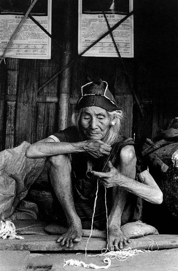 2004年,雲南孟連縣,撚線的佤族老太。吳家林/攝。