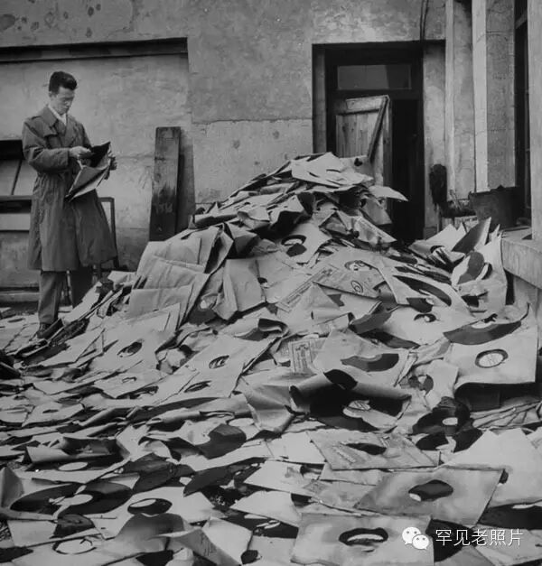 1948年12月,南京,要撤離的人看著被銷毀的爵士樂唱片。