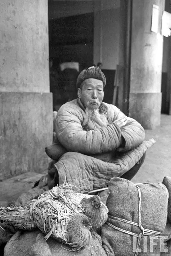 1949年2月,南京,蹲坐在街角的老人等候買主來買走他這隻雞。