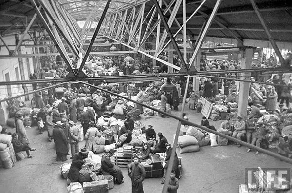 1949年2月,南京,火車站裏的難民。