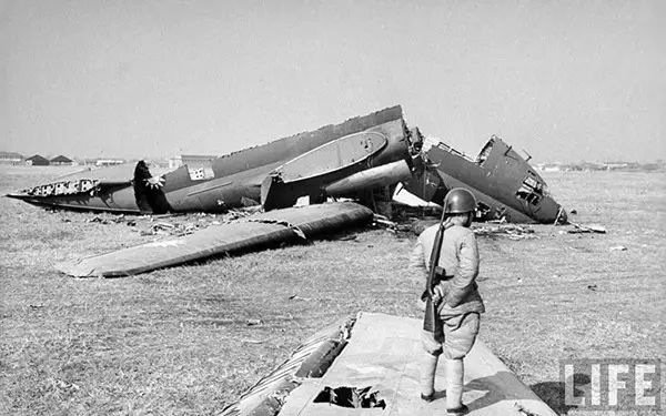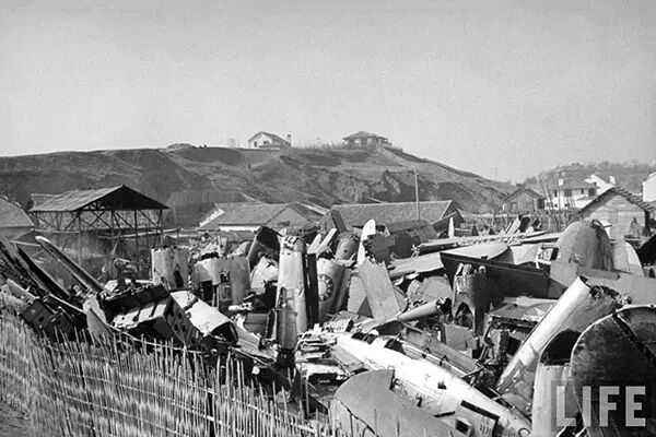 1949年2月,南京,成為廢鐵的飛機殘骸,等待被回收利用。