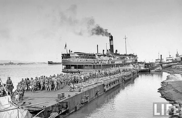 1949年2月,南京,國民黨士兵準備乘船南撤。