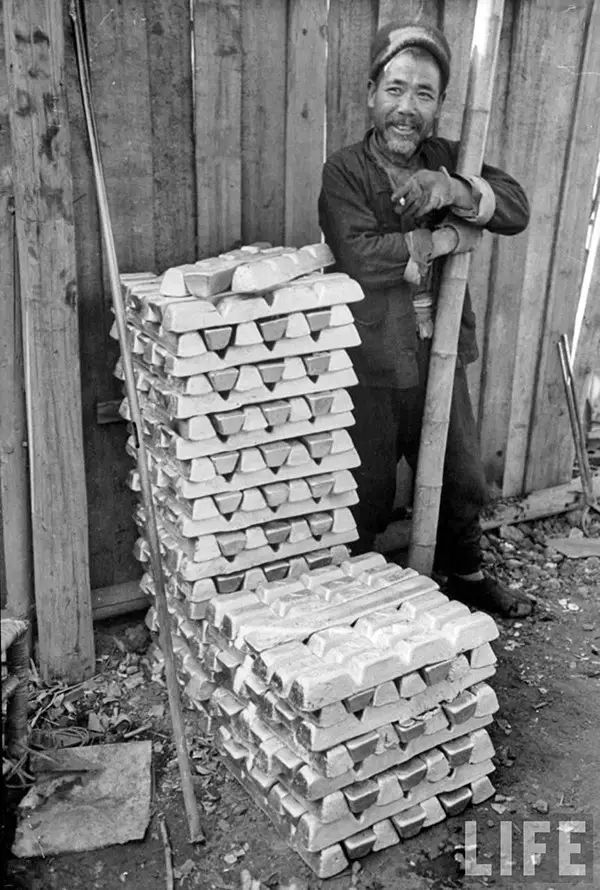 1949年2月,南京,守護金屬錠,這些金屬錠準備運往上海。