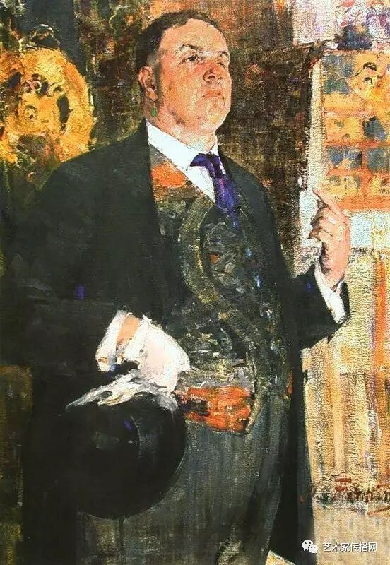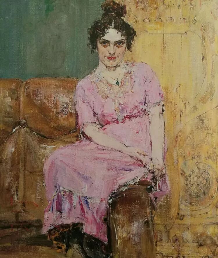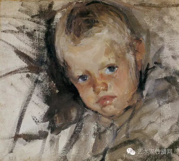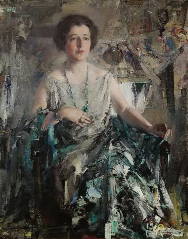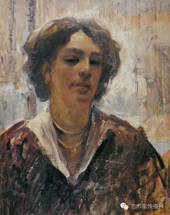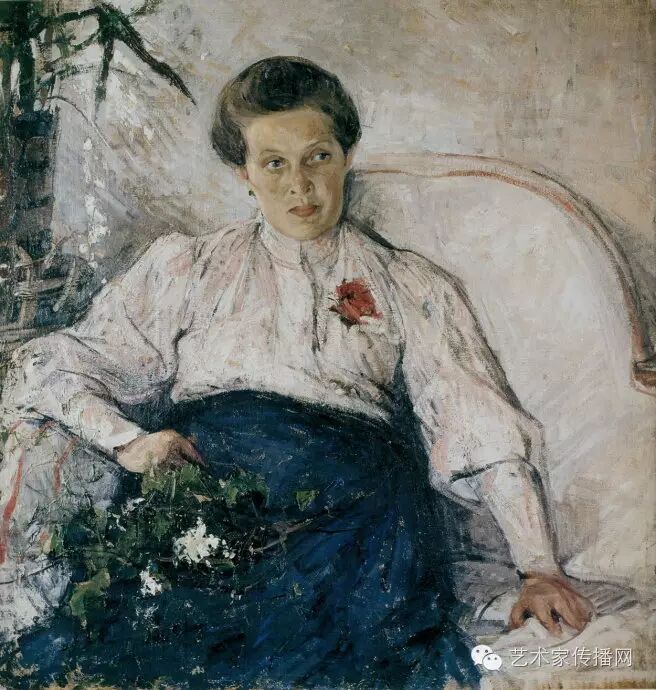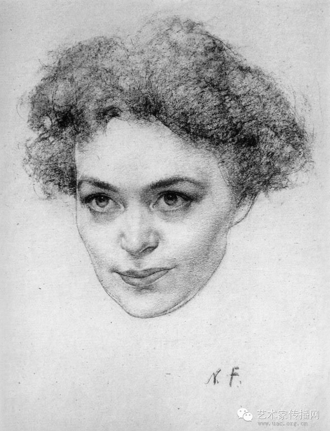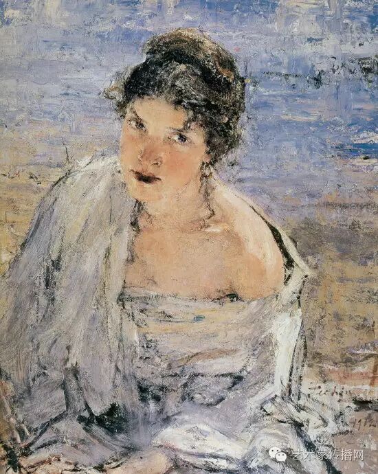 使他成名的第—件肖像畫作品《紫衣夫人》(又名《無名女士肖像》),1908年在慕尼黑國際博覽會上獲得了小金獎。