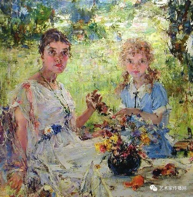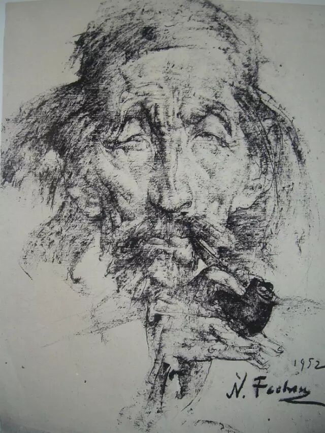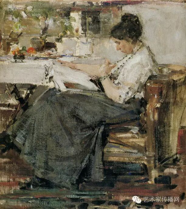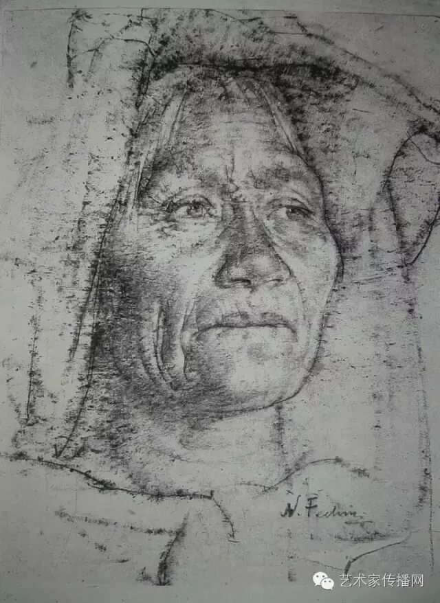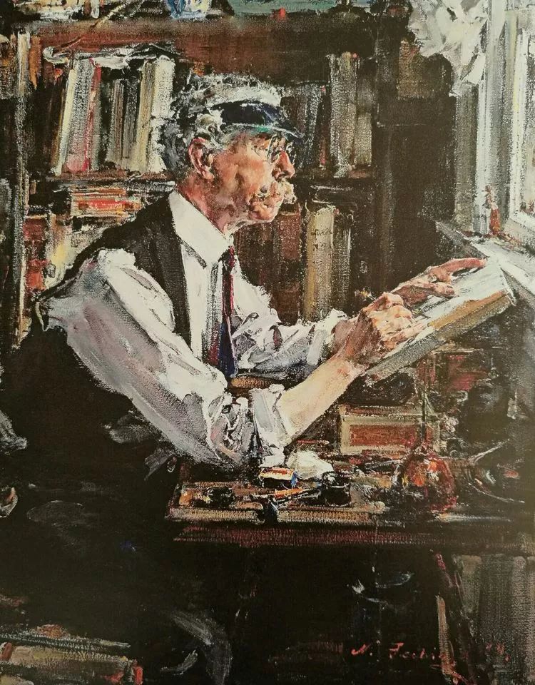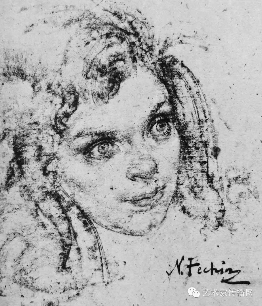 哪位學生畫得好,他就會靠過去,對他說:“您的畫,依我看,很不錯。”然後便拿起鉛筆和畫筆熱情嚴肅地修改畫麵。先認可、鼓勵,後糾正,這是一名老師最基本也最高級的煉金之術。他對學生傾囊而授,表現得單純又溫暖,常把自己的畫架和學生們的擺在—起,與學生—起畫模特兒,便於直觀有效地示範。晚上大家坐在畫室裏,費欣就像換了個人,他與朋友和學生們熱情地高談闊論說著名畫家克拉姆斯克依、列賓、謝洛夫,談起西方畫家荷爾拜因、倫勃朗……