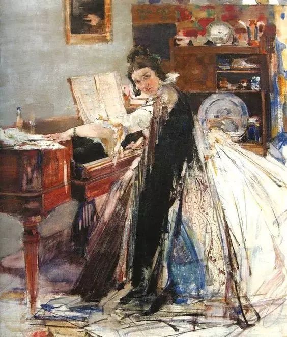 他年輕時對於油畫的藝術追求大致可分為兩個方麵:一、色彩的和諧鮮明和濃重厚實;二、個人化的表現技巧。這種追求也是他一生為之努力的方向。在題材的選擇上,他放棄了導師希望他往曆史畫方麵發展的想法,選擇了對肖像畫和風俗畫的研究,從此再也沒有改變過。