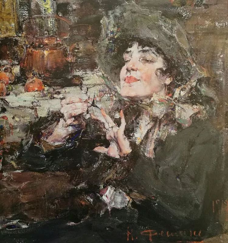 他的畫技,一直飛翔著高歌前進,展現了一個偉大畫家的驚人天賦,然而,他對祖國的思念卻一直匍匐著,紮在心底盤根錯節永不停歇,在他心中,喀山的炊煙最美,擦上一層就是仙境。