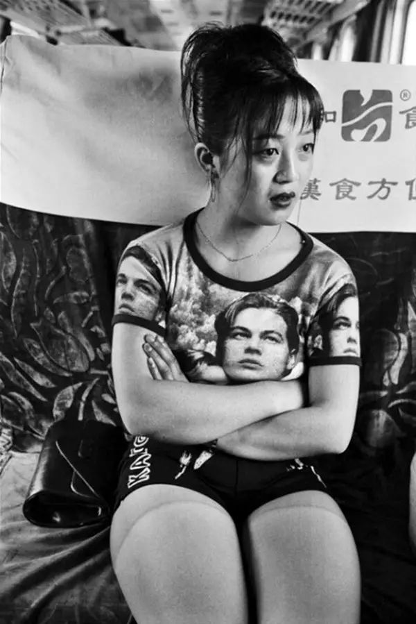 1998年,從哈爾濱-吉林的列車上,時尚的女乘客。