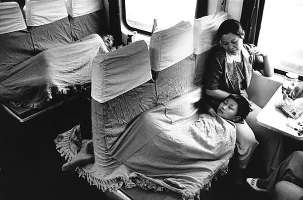 1995年,從西安-鄭州的列車上,裹著椅套睡覺。