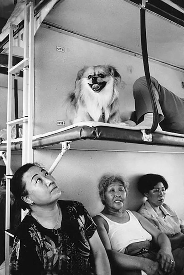1995年,從哈爾濱-北京的列車上,臥鋪車廂帶寵物狗上車的乘客。