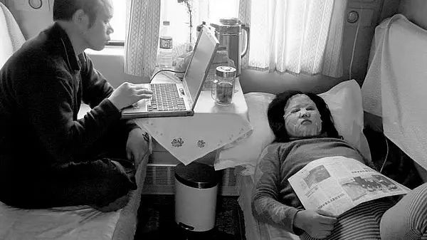 2007年,北京到拉薩的列車上,一位女子躺著做麵膜,另一位男子則在玩電腦。