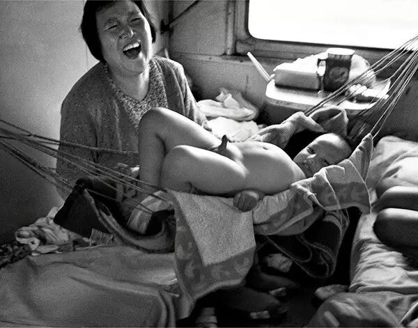 1992年,從南寧開往北京的列車上,這位年輕媽媽用八寶粥的罐子來解決兒子的內急。