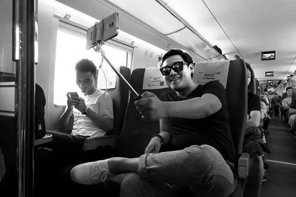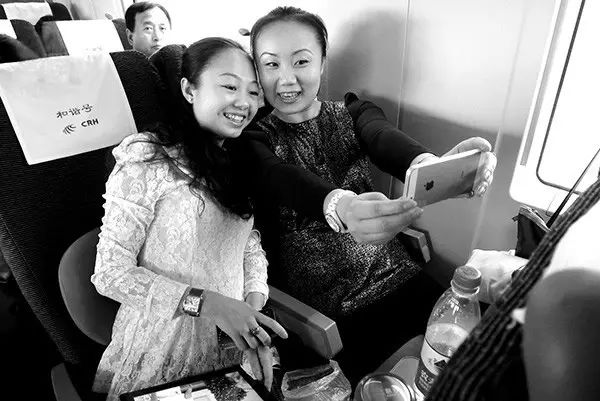 2013年,從北京西-廣州南的列車上,兩位玩自拍的乘客。