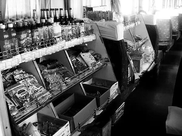 2006年,內蒙古海拉爾到北京的列車上,火車上的小賣部。