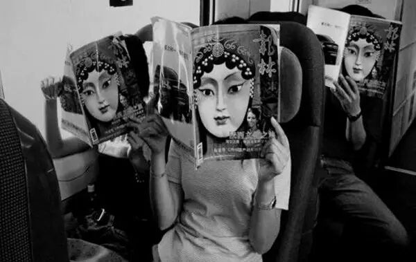 2007年,北京到哈爾濱的列車上,三位乘客同時在看火車上的雜誌。
