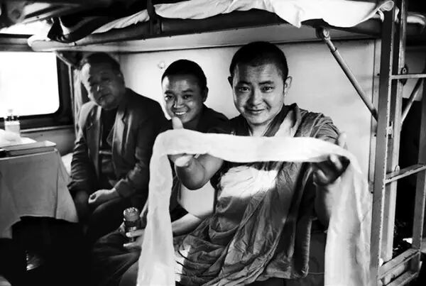 1999年,從香港九龍開往上海的列車上,臥鋪車廂內手捧哈達的年輕喇嘛,他們來自甘南拉卜楞寺。