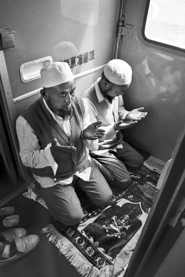 1995年,從蘭州-北京的列車上,穆斯林做禮拜。