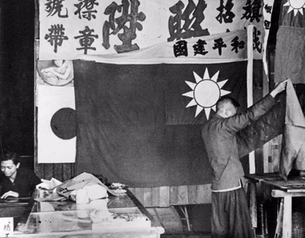 1940年,廣州,國旗商鋪——在日占時期製作汪偽的民國旗幟。