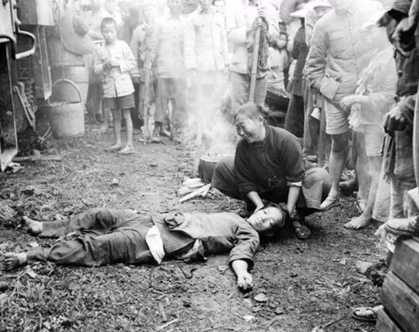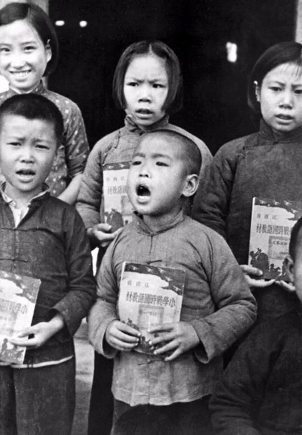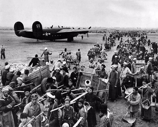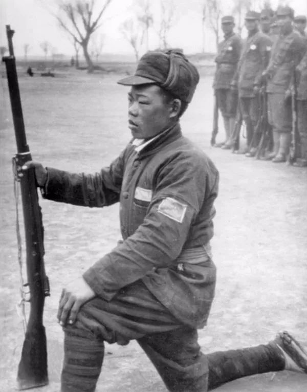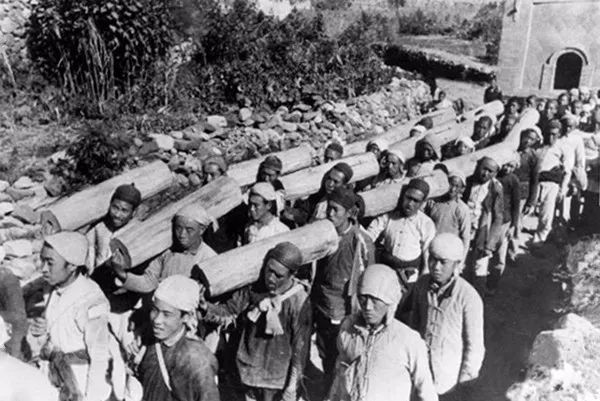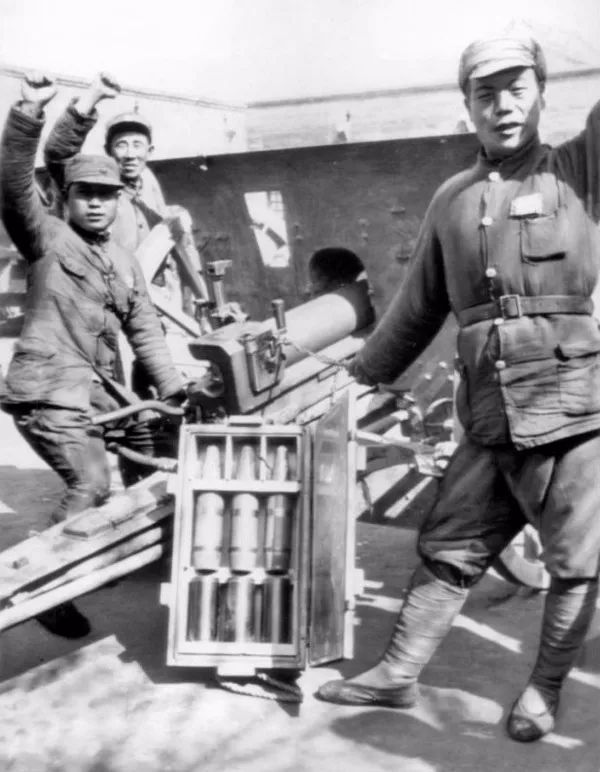 1945年,八路軍民兵抗日隊伍,扛的是木製土炮。