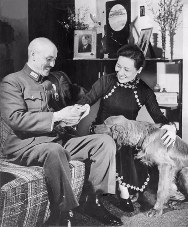 1941年,蔣介石、宋美齡與他們的愛犬休閑。