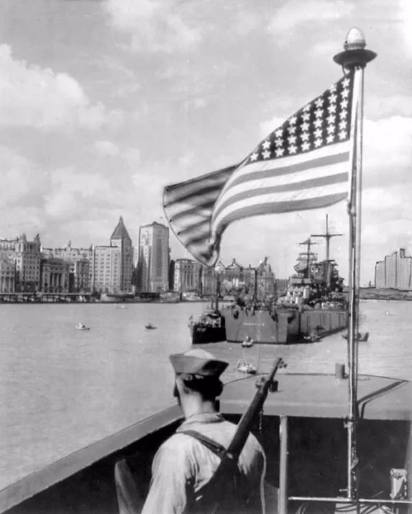 1945年,上海南京路上,歡慶抗日戰爭勝利的人群。