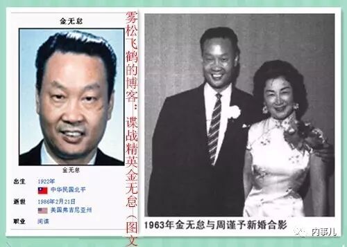 公開資料顯示,金無怠1922年出生於北京,燕京大學新聞係畢業。1938年開始在美國駐上海領事館擔任譯員,1944年被周恩來收為間諜。1949年到美國駐香港總領館工作,1952年加入美國中央情報局,在衝繩島為美國中情局外國廣播情報服務局工作,在那裏娶了當時台灣最有人氣的女主播周謹予做妻子。