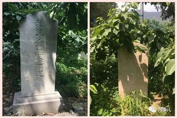 〝金無怠 〞墓碑,四周雜草叢生,顯得荒涼,旁邊還有他父親金孟仁的墓碑。(微博圖片)