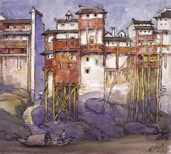 長江邊上的吊腳樓 吳德隆 39x44cm