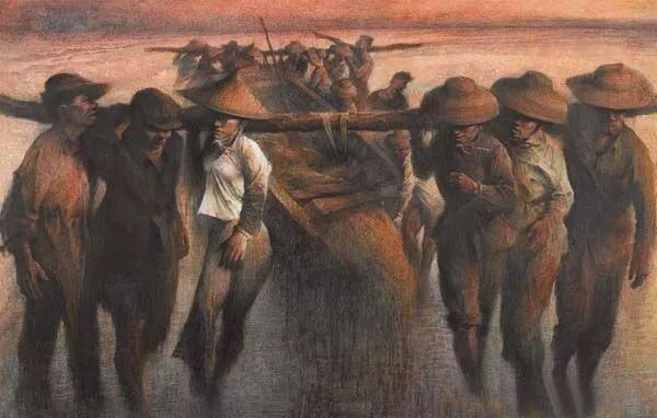 李劍晨 初霽曝帆 1957 28x39cm