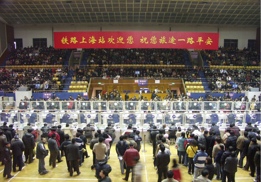 2008年,上海站工作人員引導旅客進入地下車庫候車。