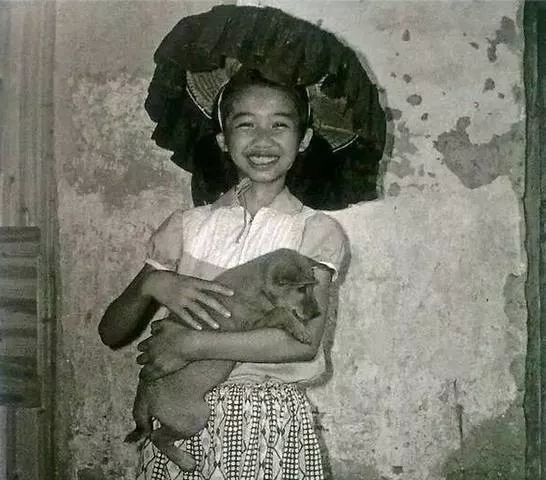 1981年,廣東廣州郊區農家少女,抱著小狗拍下新潮留影。