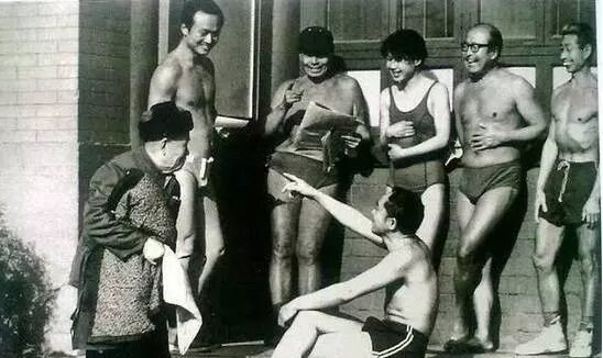 1982年,北京冬泳者邊曬太陽邊聊天。