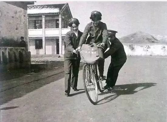 1983年,浙江溫州,學騎自行車的女郵遞員。