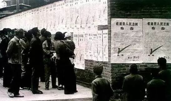 1983年,湖北鬆滋“從重從快打擊犯罪”期間,法院的死刑布告貼滿牆頭。