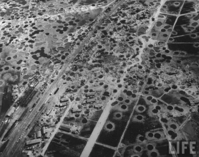 1945年9月,日本投降,遍地都是被轟炸的深坑。
