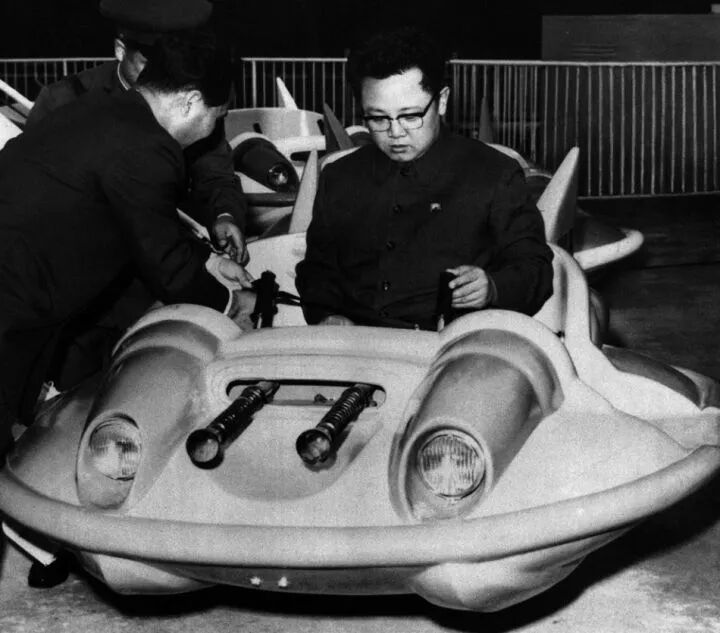 1977年10月2日,金正日在平壤一所遊樂場視察,親自測試兒童碰碰車性能。一代領袖童心未泯。