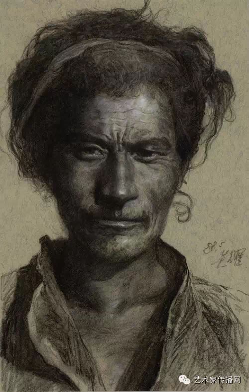 男人肖像 1977 33.5×25.9 cm 素描 中國美術館藏
