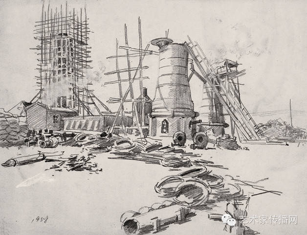 徐水七高爐工地 1958 29.3×38 cm 速寫 中國美術館藏