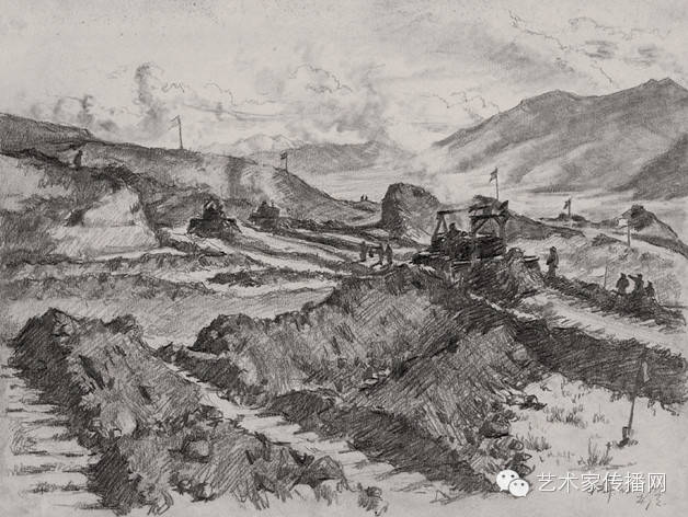蘭新鐵路工地 1954 29.5×39.7 cm 速寫 中國美術館藏