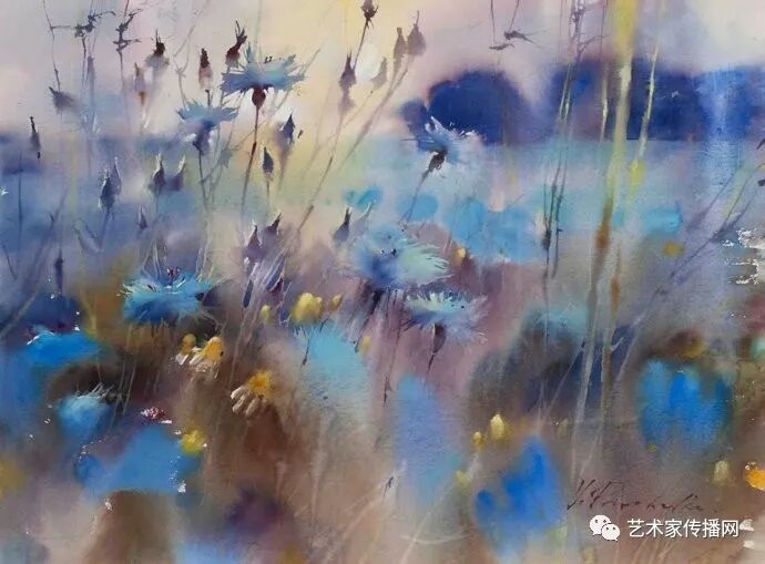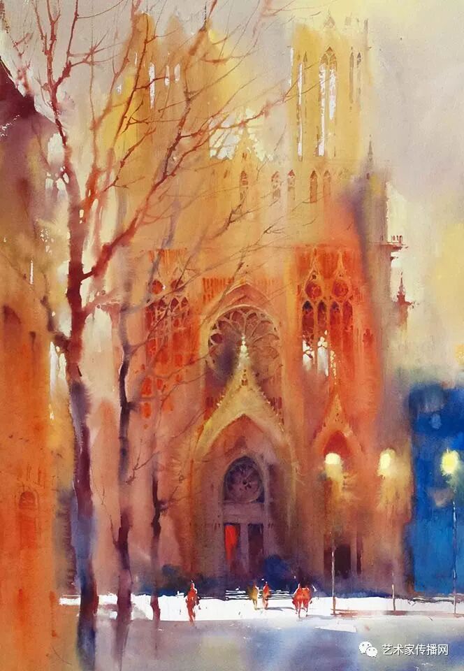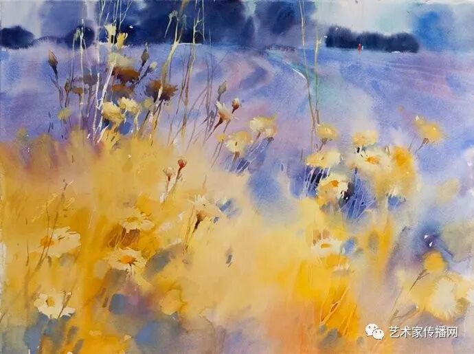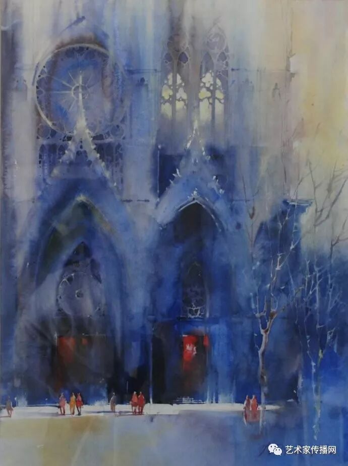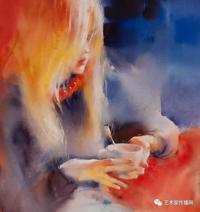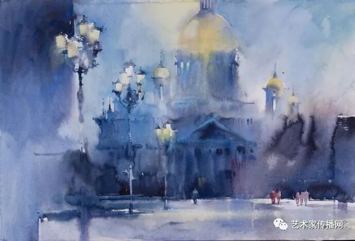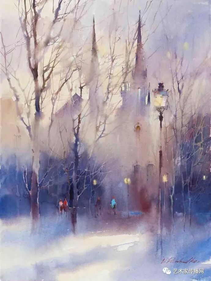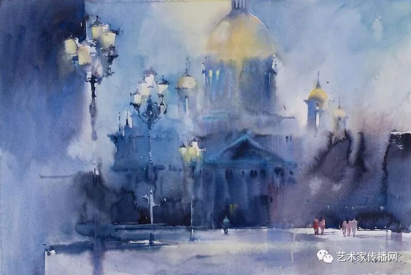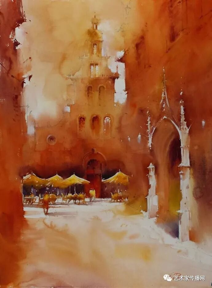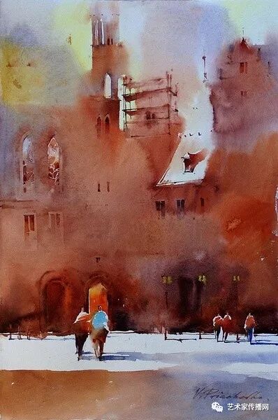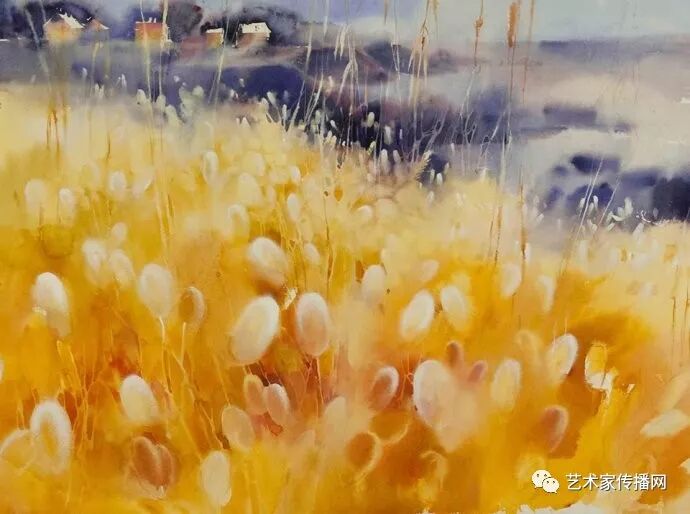 運用美麗而幹淨的色彩及明亮的色調將色相中的對比關係表現的淋漓盡致。維多利亞的《秋韻》、《老街風情》等作品便是一幅將對比色表現到極致的佳品,畫麵中大量運用了黃色與紫色,藍色與橙色的互補關係,冷暖關係及色彩純度,在模糊、清晰與隱約間徘徊,鮮活生動並帶來了熱烈的空間感受,“當眼睛看到一種色彩時,便會立即行動起來,它的本性就是必然地和無意識地立即產生另一種色彩,這種色彩同原來看到的那種色彩一起完成色輪的總和。”