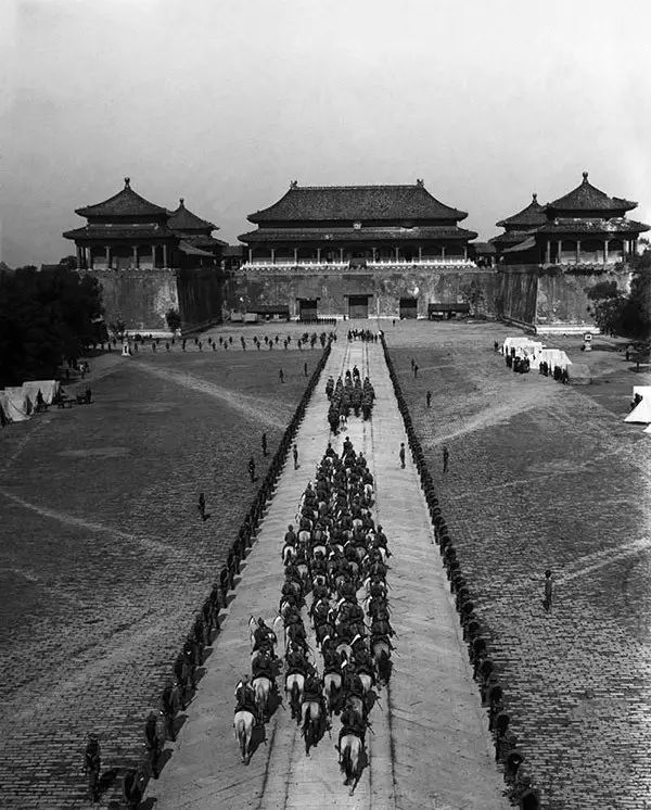 1900年,八國聯軍總司令瓦德西由聯軍軍官陪同,率軍穿過午門進入紫禁城。