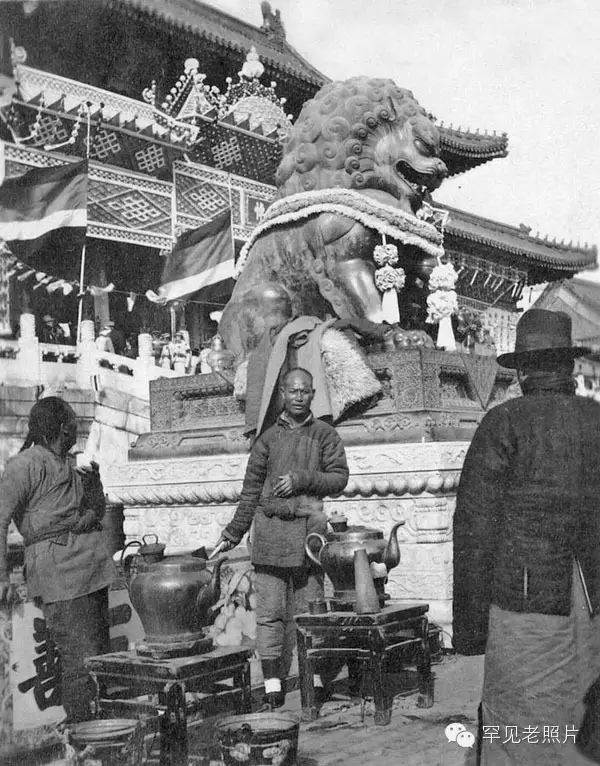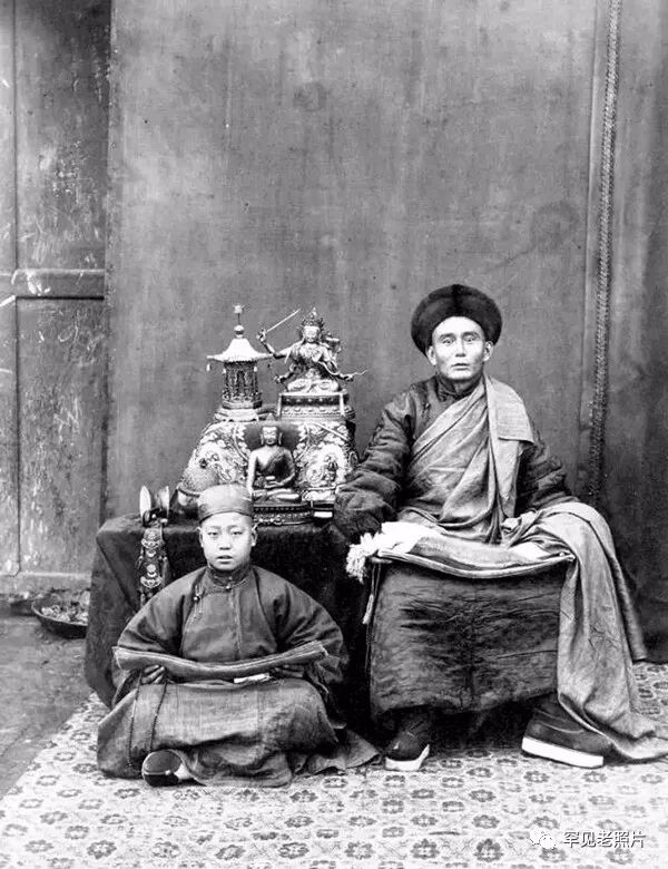 一位喇嘛和他的弟子。托馬斯·查爾德(英)/攝,大約拍攝於1870-1890年之間。這張照片是北京最早的宗教人物攝影作品。