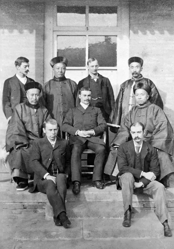 1891年,北京,滿清官員與洋人合影。坐中間的是洋人,這好像不符合天朝上國的道統與官統。