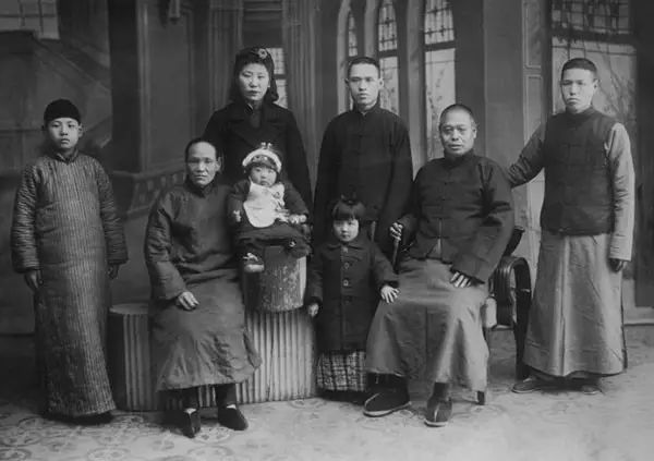 1945年,北京,一戶人家的全家福。北京大北照相館拍攝。