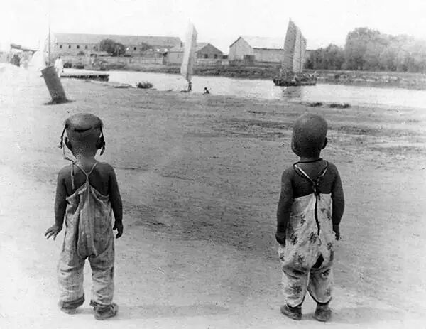 北京,站在岸邊遠望的兩個孩童。雷尼諾恩/攝,大約拍攝於20世紀初。