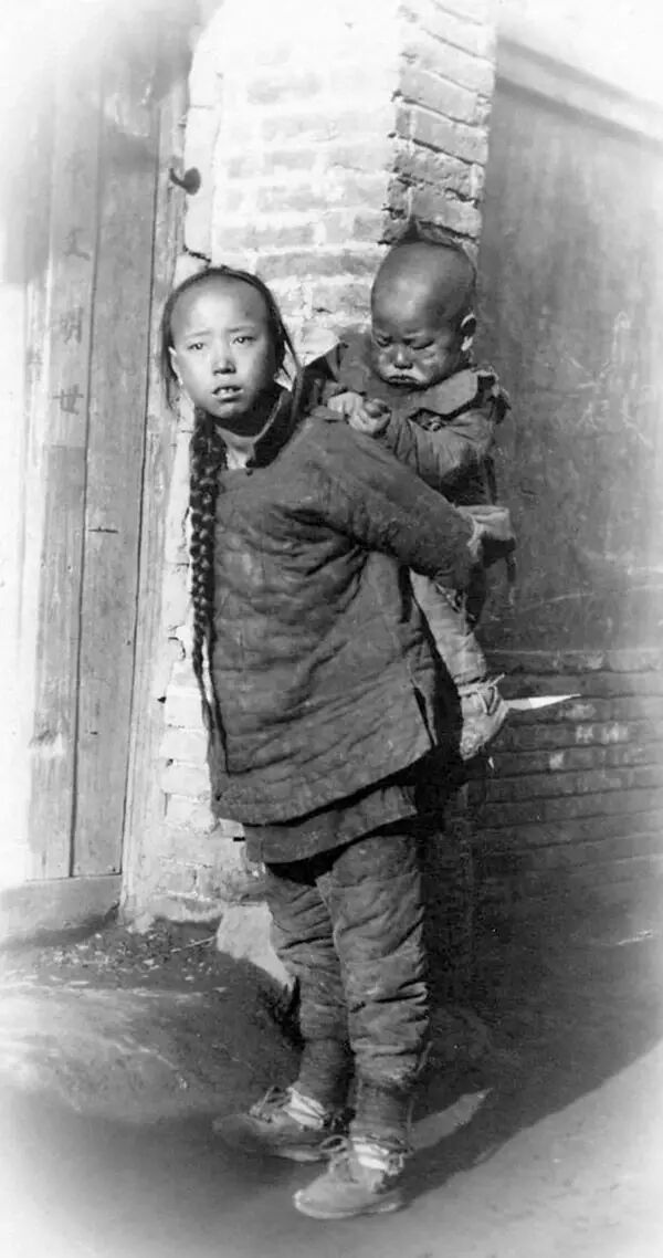 北京,背著弟弟的少年。雷尼諾恩/攝,大約拍攝於20世紀初。