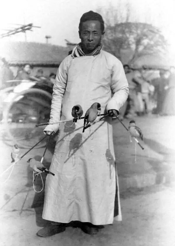 北京,賣鳥小販。雷尼諾恩/攝,大約拍攝於20世紀初。