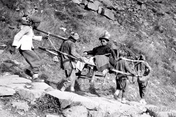北京門頭溝妙峰山廟會,坐轎趕廟會的有錢人。照片大約拍攝於1924-1927年之間。