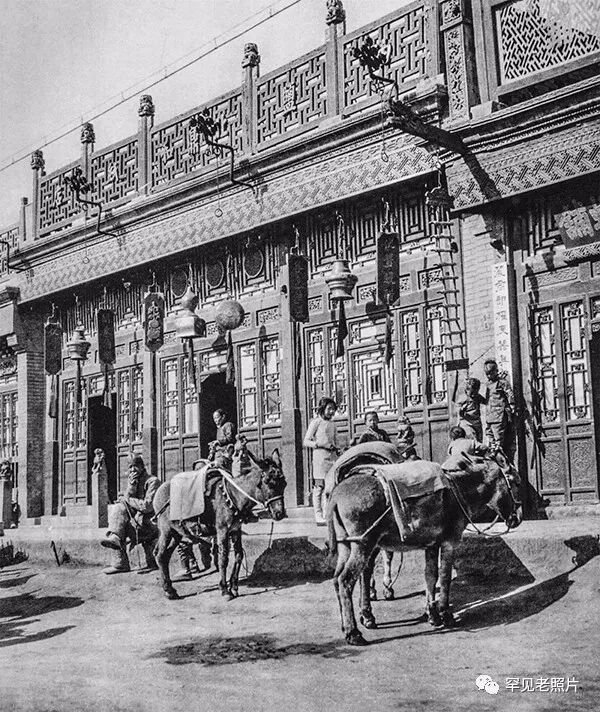 北京,商鋪前供行人租賃的驢子。唐納德•曼尼(英)/攝,大約拍攝於20世紀初。