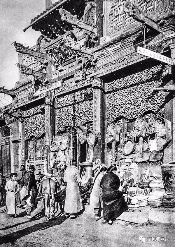 北京,商鋪前的顧客。唐納德•曼尼(英)/攝,大約拍攝於20世紀初。